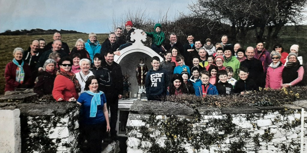 Senan and his monks spread the Christian message to all the communities in the surrounding areas, and also established an order for women at Kylenagallach in Carrigaholt Parish. It is believed that Senan had banned women from the island. The story goes that one brave lady “Ceannaire” insisted on visiting the island but died before getting on the land and was buried on the shore! Senan died in Kylenagallach in 544 and was buried on the island at Leaba Seanain. The feast of St Senan is March 8th and his birthplace in Molougha has been a place of pilgrimage over the years. The day for the pilgrimage is June 29th. The pilgrimage consists of “Rounds” and saying the rosary repeatedly.