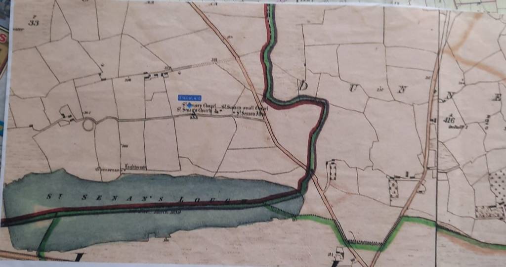 On Inis Cathaigh there was a dangerous Cathach (snake). Senan is believed to have banished him off the island and it is said that Cathach did not stop until he landed in Doolough Lake. (It is ironic that the parish is now supplied by water from that lake).