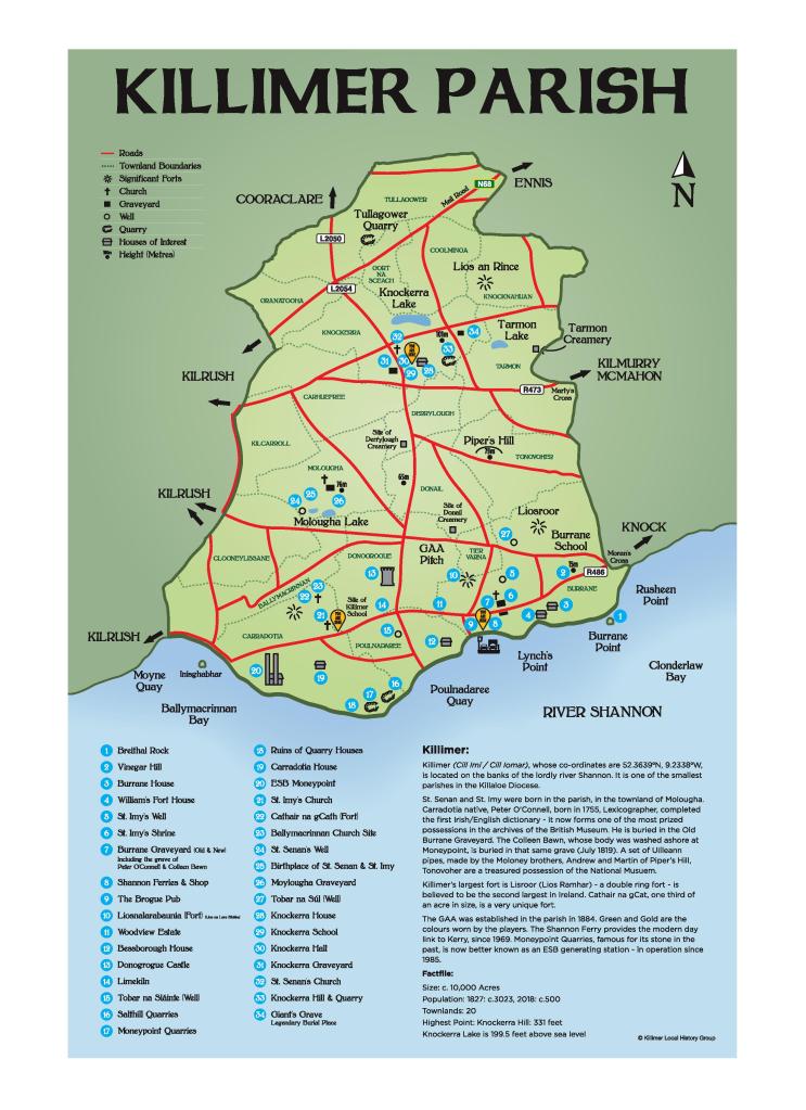 This is a copy of our Parish map that we worked on and with the help of funding from the Moneypoint Windfarm Community Fund we have installed these beautiful, detailed maps at the Ferry, across from Killimer church and inside and outside the community hall.