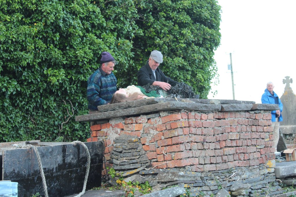 ‘Pat Connell (grandfather of Paddy Rochford), who was a fisherman, was on his way to the weir near Moneypoint to undertake his fishing, when he noticed seagulls hovering on shore. When he investigated, he discovered a body wrapped in fish netting – there being no phones, etc. he had to make contact with authorities. The military took the body to Cleary’s (where Patrick Browne now lives).’