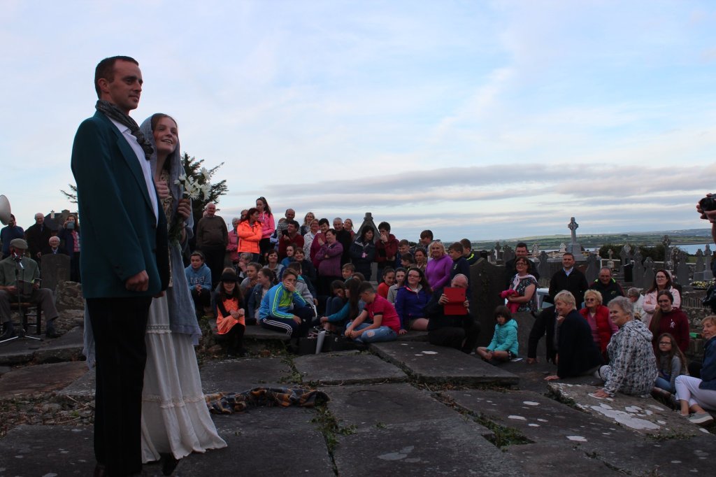 As a local history group, we felt it would be appropriate to re-tell her story by re-enacting the tragedy, which led to the discovery of her body at Poulnadaree, by two local men, Patrick (Potch) O’Connell and John O’ Driscoll. The commemoration was incorporated with the annual graveyard Mass in Burrane cemetery. The parish came together in prayer, music, song and drama to commemorate the occasion.