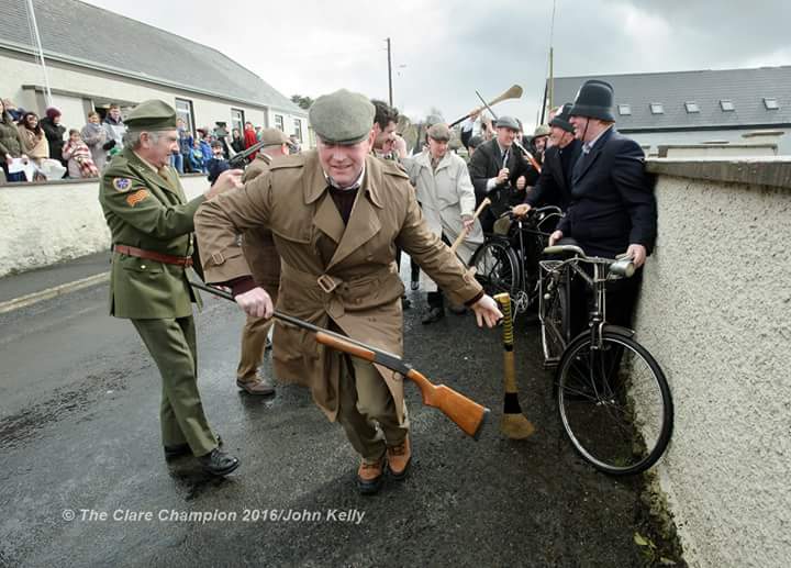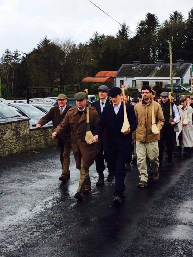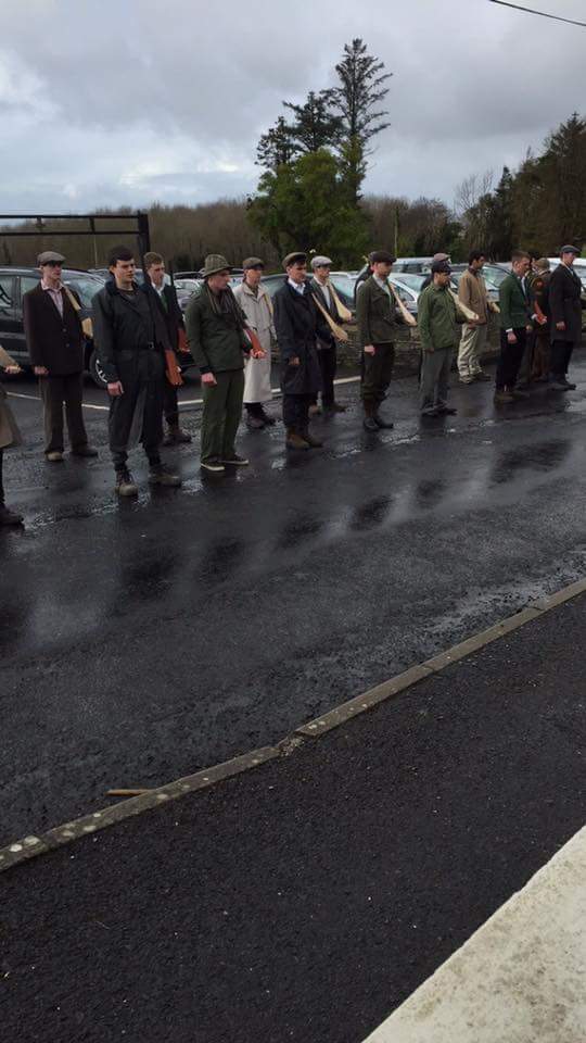 We commemorated the 1916 Rising through the medium of a re-enactment of a recorded incident that took place in Knockerra on Easter Sunday 27th March 2016. We also unveiled plaques in memory of the Volunteers of the 2nd Battalion of “A” Coy. & “E” Coy. & Cumann na mBan members from both sides of the parish. The parish really got involved with nearly everyone wearing period costumes and the local GAA team were well drilled as part of our re-enactment! It was a fantastic day enjoyed by all.