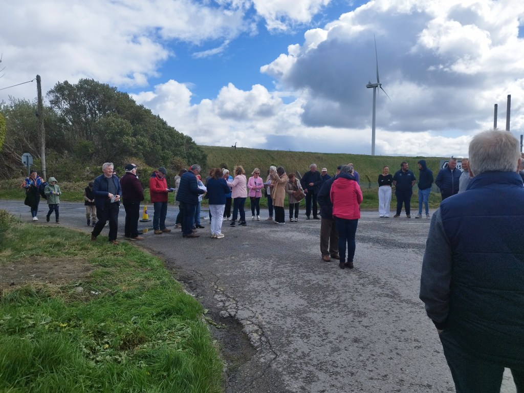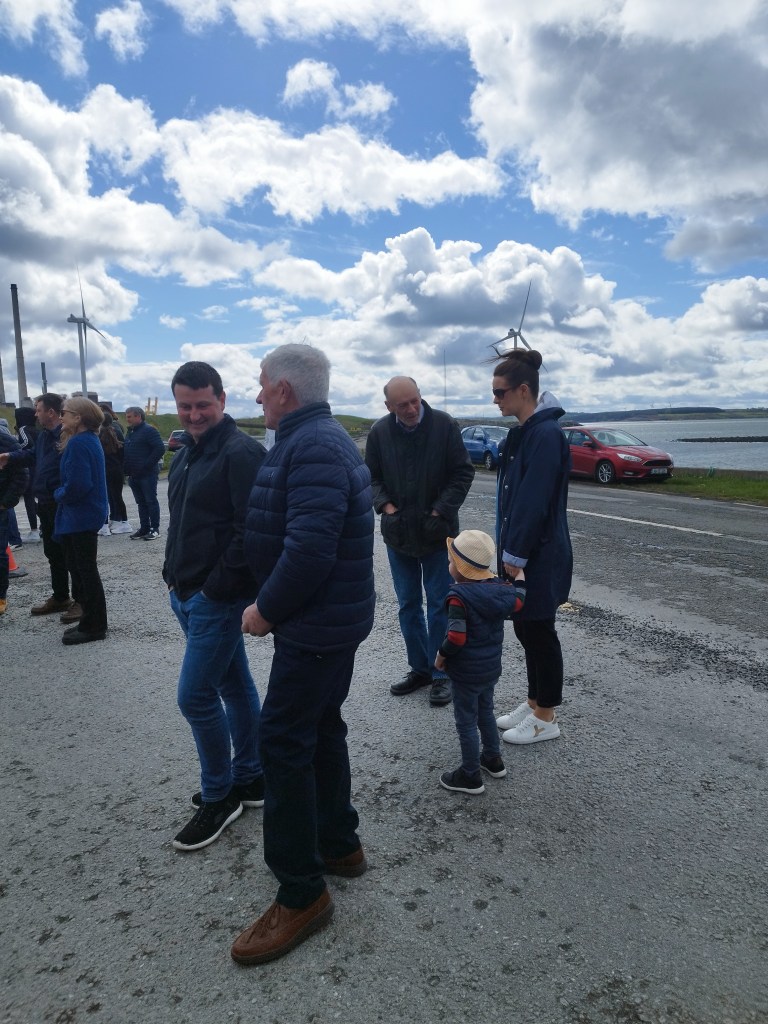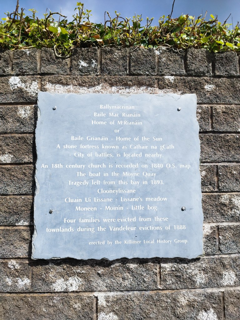 The rain held off just long enough to have our introduction by Tom Nugent, some beautiful music and singing by Killimer Choir, a short history lecture on the 3 townlands by Michael Gilligan, a poem on the Moyne Quay disaster by Darragh and Michaela Kelly and a quick cuppa tea!