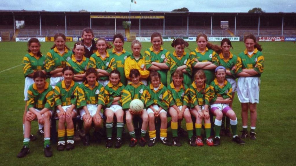 For the rest of the 1990s this was the situation for girls within the parish. Many of our neighbouring parishes gained from our lack of a team. However, in the school year 1999-2000 another attempt was made to restart an all-girls school team. For the first time, in a long time, there was a big group of girls eager to play football. That year a Killimer schools team went on to win the beginners schools final in Cusack Park against Kilmurry Ibrikane B. Michael Madigan (Derrylough) was the trainer and manager and the backroom team included Dolores Miniter (Trellig), Bernie Moloney (Tonovoher) and Ita Griffin (Granatooha). This team, and teams coming after them, went from strength to strength and were very successful at underage, winning Primary schools, an U12, two U14s and an U16 Championship. They had victories over Clooney-Quin, Newmarket, Crusheen, Ballyea and Doonbeg. For about eight years the Killimer Ladies football team represented the parish with skill and determination. They also represented the club in a number of underage county and primary school teams. Unfortunately due to lack of numbers the club ceased activity in 2008. It hadn’t fielded an adult team for the two years before it folded, but the Killimer girls had assisted neighbouring Shannon Gaels. Killimer ladies were a vital part of the team which won the Junior B Championship and Junior A League and Championship. After the team disbanded a number of girls continued to play with Shannon Gaels, while others went on to play for other neighbouring teams – Kilrush, Cooraclare, Coolmeen and Kilmihil – with distinction. To this day Killimer girls continue to play at both underage and adult level, with a number also going on to represent the parish at county level, both at under age and senior level. While they may not always wear the green and gold of Killimer they continue to show off the skills learnt on the good old Killimer pitch.