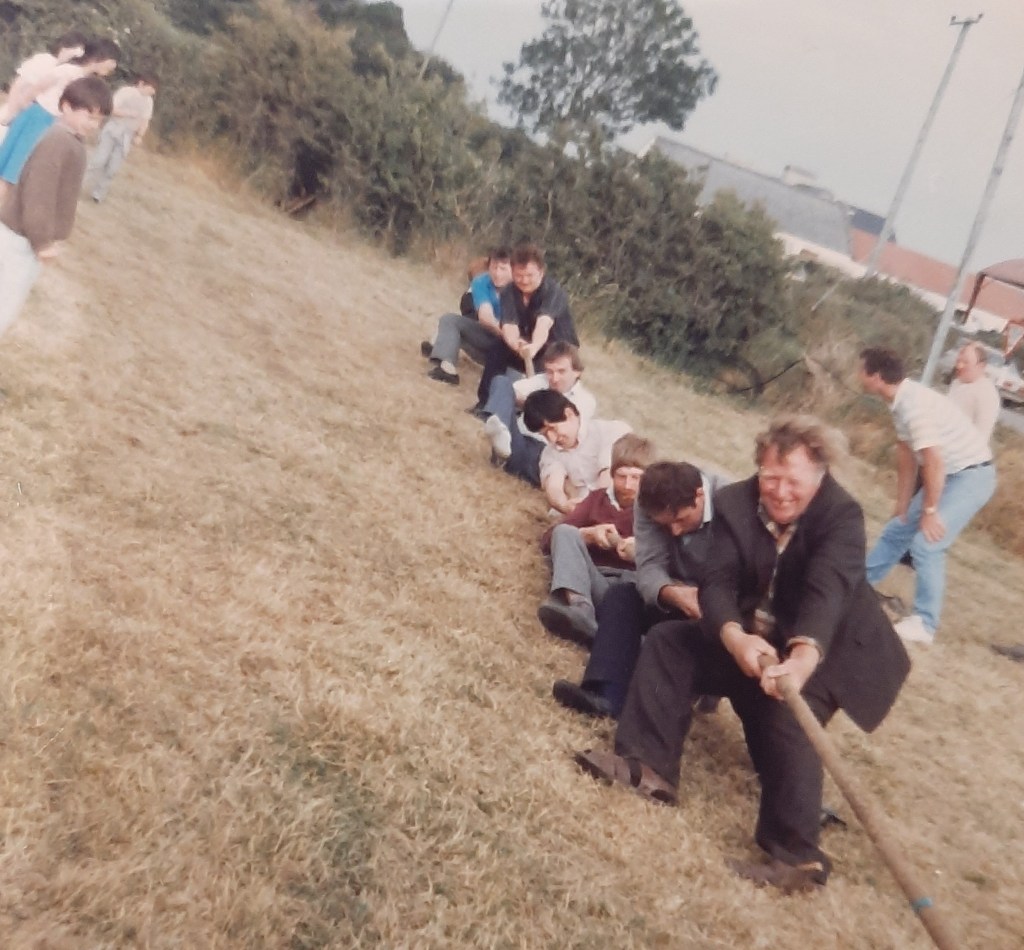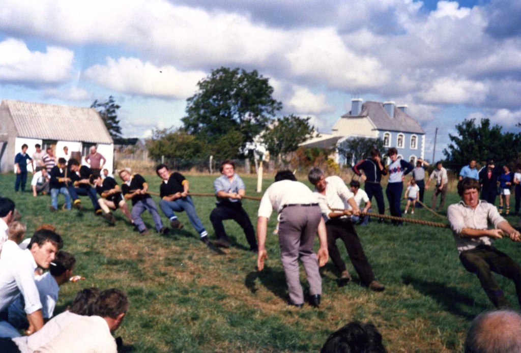 The Tug of War Association was founded in Ireland in 1967 (before that it was known as Black Tug of War). Tug of war is a sport that entails a test of human strength, stamina and team work. In the early days of the sport the strongest able-bodied men of the parish would challenge eight men, from another parish, to a pull. The task was to pull the opposing team beyond a mark on the ground; the team with the best of three pulls was declared the winner. Sitting on the ground could disqualify the team (two cautions were given by the referee). It was active in the parish in the 1940’s, 1960’s, 1970’s and 1980’s. Tug of war, like many sports, has had its peaks and troughs and has reached a trough since the late 1980’s in this area.